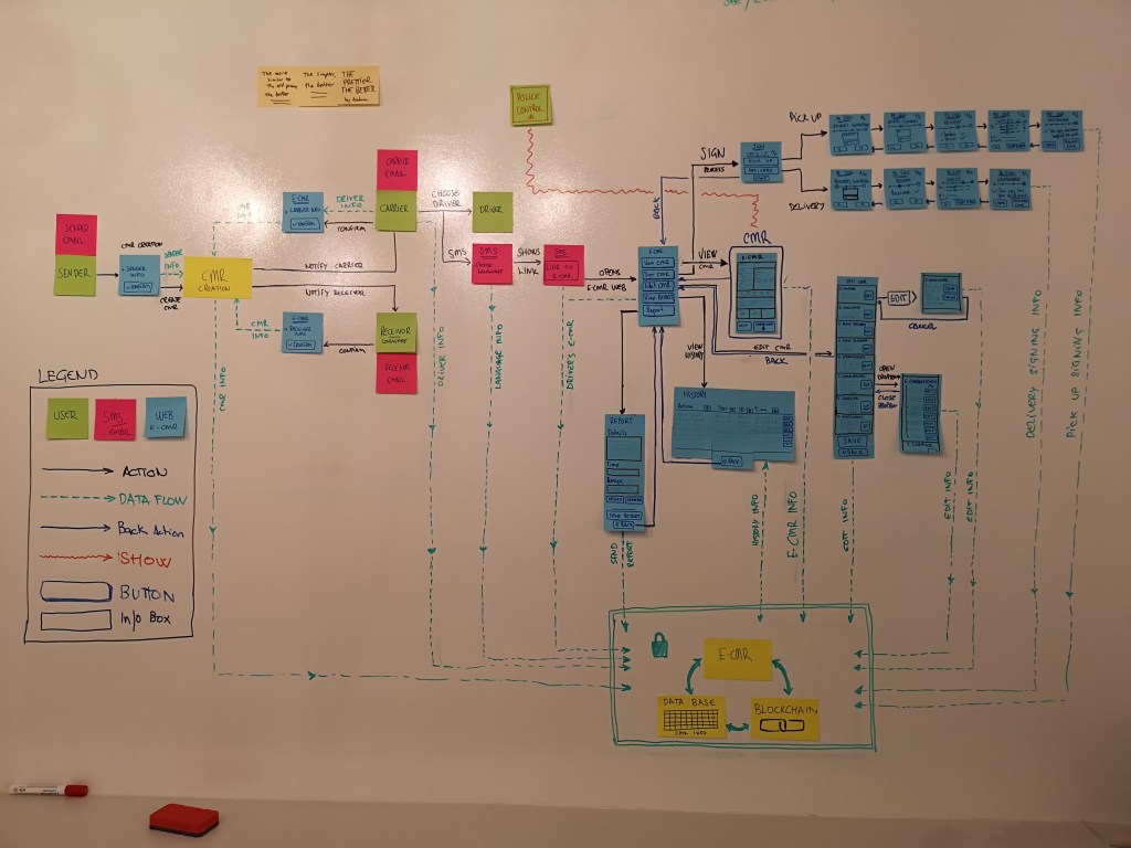 Having very little time to develop a prototype and knowing that the driver is currently the person responsible for the CMR, we decided to focus on a front-end solution specifically for the driver and their journey