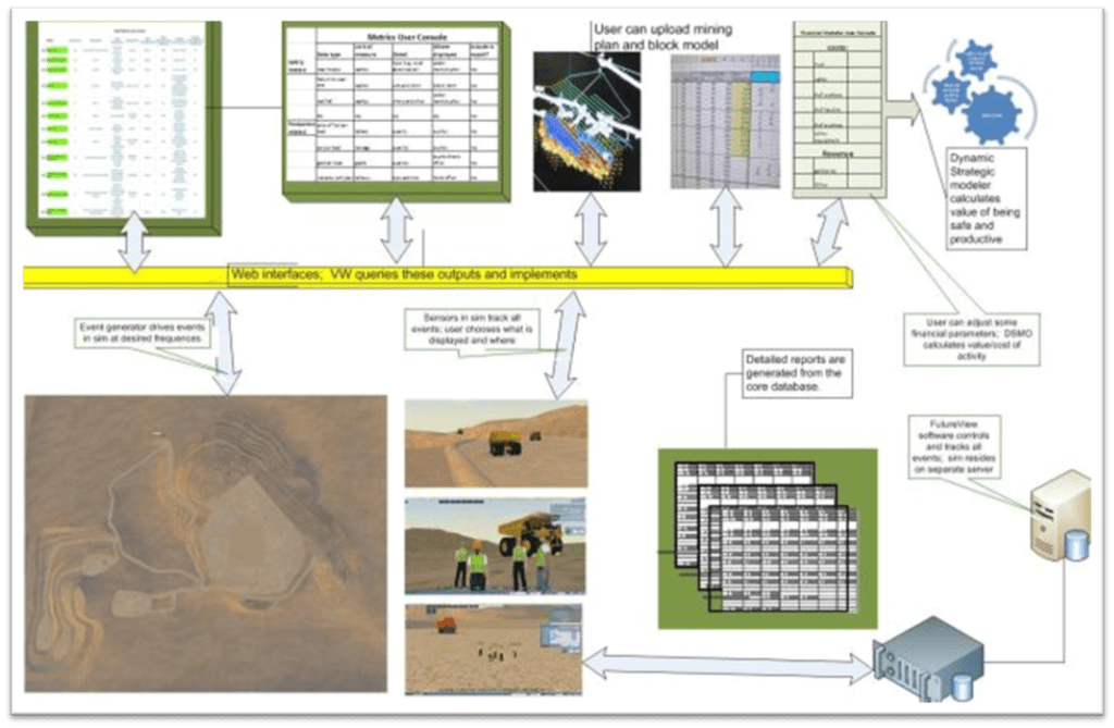 One of the advantages of virtual simulations is that we can measure nearly everything that happens. Designing the metrics and feedback meant working with companies to find out their KPIs and what things they wanted to track (ore recovery, loss-time injuries, equipment loss, near misses, etc.). From there, we had to design ways to measure and present these indicators during and after our simulations.