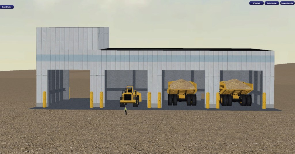 The first thing we had to do was design the entire virtual environment. For this, I personally created and imported almost every single 3d element into the virtual world: the vehicles, the uniforms, the buildings, the tools, and even the mine itself.