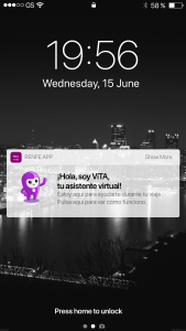 When passenger boards train, they are sent a notification from ViTA. They can open the platform to see the instructions.