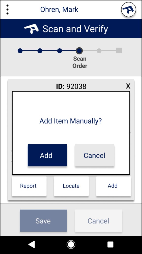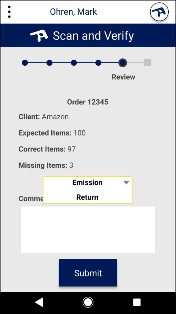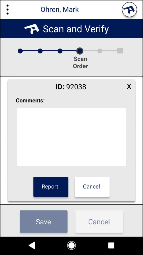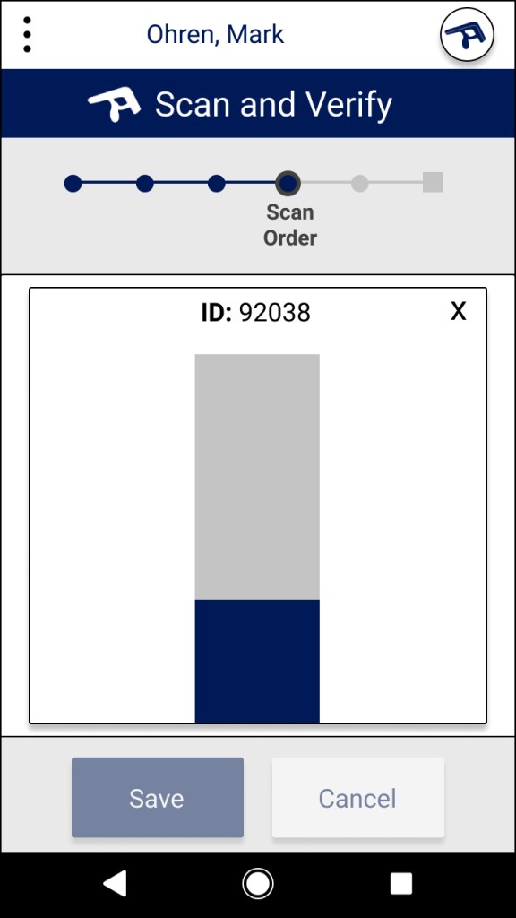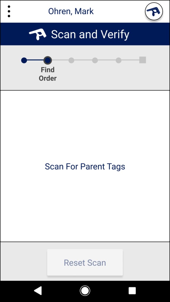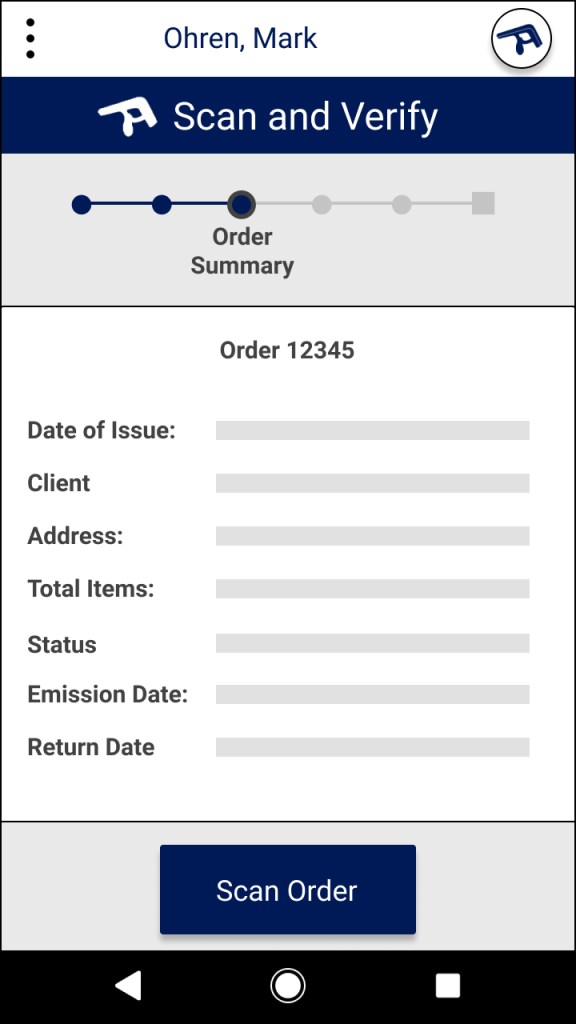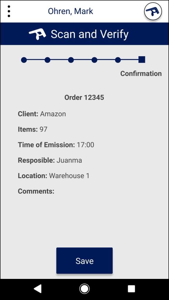 The first part of our design is a simple button that leads directly to Junma’s functionality. The language is clear. If Juanma needs to scan and verify an order, he must simply press “Scan and Verify”